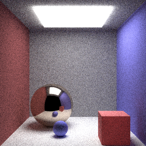 I have rendered the same scene with different resolutions and samples per pixel. Samples per pixel refers to the number of times a ray is shot through every pixel. For every sample, a ray is shot through a slightly different point in the pixel.