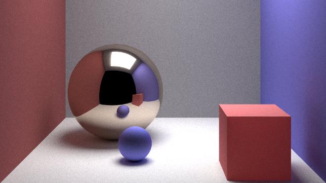 For a programming class during my studies at the Rotterdam University of Applied Sciences I wrote an object oriented ray tracer in C++. There is support for multiple types of objects, diffuse and reflection, multiple light sources and a scene reader.